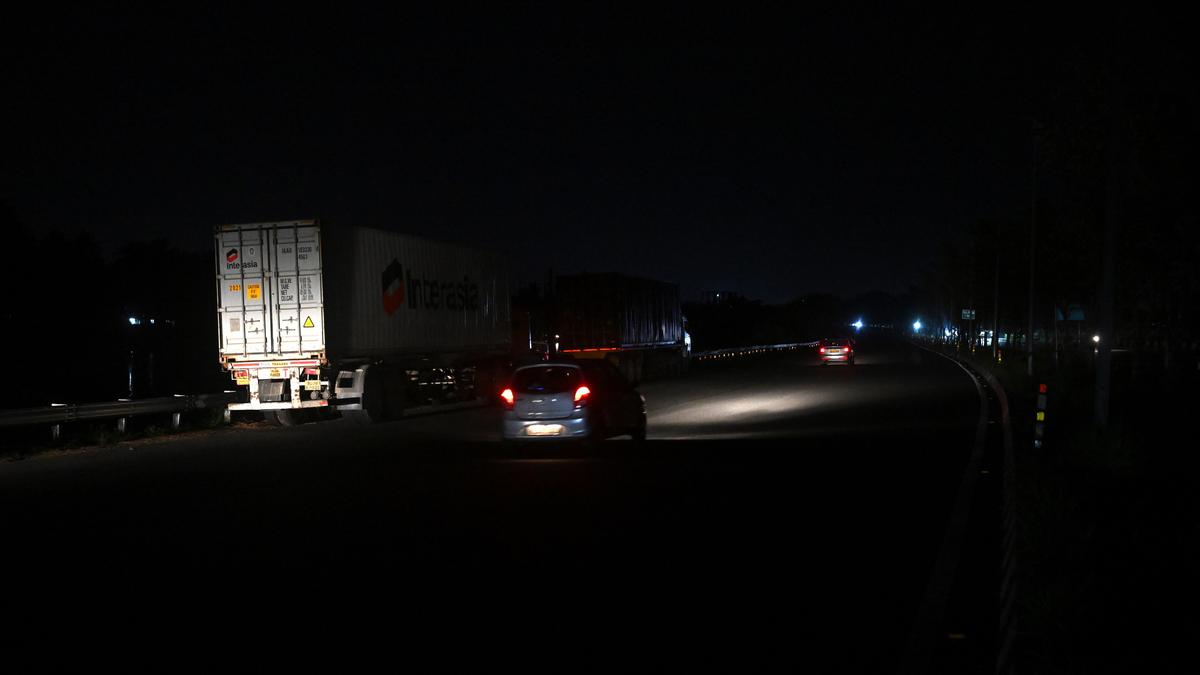 पिछले एक दशक में दो दर्जन से अधिक घातक दुर्घटनाओं के बाद एनएचएआई पूरे चार-लेन कंटेनर रोड पर पर्याप्त प्रकाश व्यवस्था स्थापित करने पर सहमत हुआ। | फोटो साभार: एच. विभु