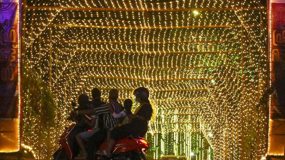 28 फरवरी को तिरुवनंतपुरम में अट्टुकल पोंगाला त्योहार से पहले रोशनी से जगमगाती सड़क पर चलते यात्री। फोटो साभार: पीटीआई