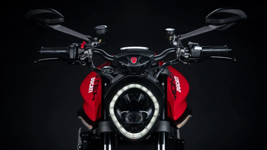 Ducati Monster 937cc का डिज़ाइन पहली ही नजर में किसी का भी दिल जीत लेने वाला है। इसमें क्लासिक Monster DNA को बरकरार रखते हुए मॉडर्न और एग्रेसिव टच दिया गया है। इसका Muscular Fuel Tank बाइक को दमदार लुक देता है। फ्रंट में LED हेडलाइट और DRL दिए गए हैं, जो बाइक को शार्प और स्टाइलिश अपील प्रदान करते हैं।