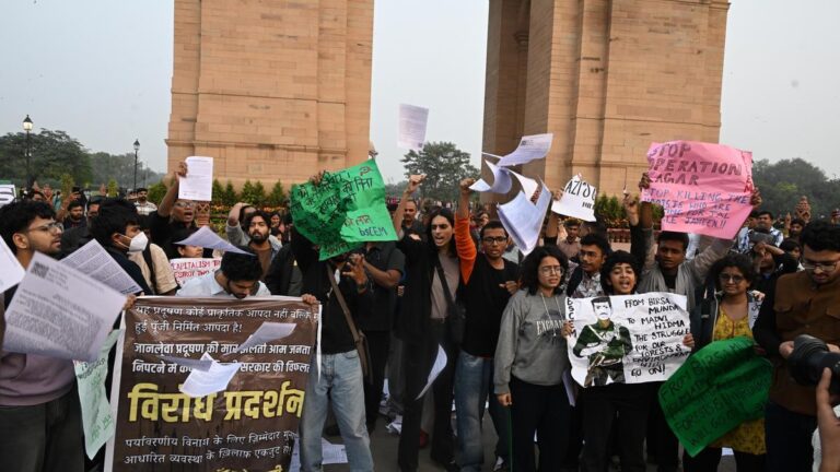 वायु प्रदूषण पर इंडिया गेट पर विरोध प्रदर्शन में दर्जनों लोग हिरासत में; राजनीतिक विवाद शुरू हो गया है
