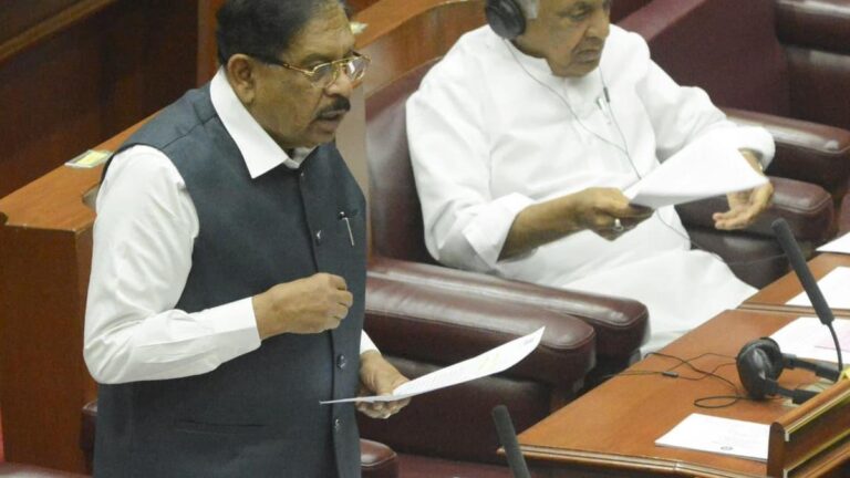 गृह मंत्री जी. परमेश्वर 19 दिसंबर, 2025 को बेलगावी में विधान परिषद में बोलते हुए। फोटो साभार: पीके बडिगर गृह...