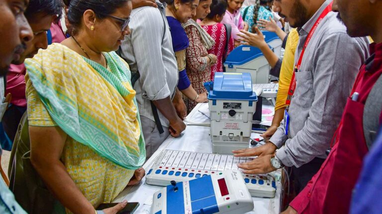 एक निर्वाचन अधिकारी इलेक्ट्रॉनिक वोटिंग मशीन और वोटर वेरिफ़िएबल पेपर ऑडिट ट्रेल की कार्यप्रणाली का प्रदर्शन करता है। फ़ाइल |...