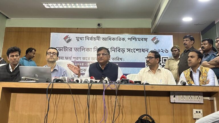 पश्चिम बंगाल के मुख्य निर्वाचन अधिकारी मनोज कुमार अग्रवाल 24 नवंबर, 2025 को मीडिया को संबोधित करते हैं फोटो साभार:...