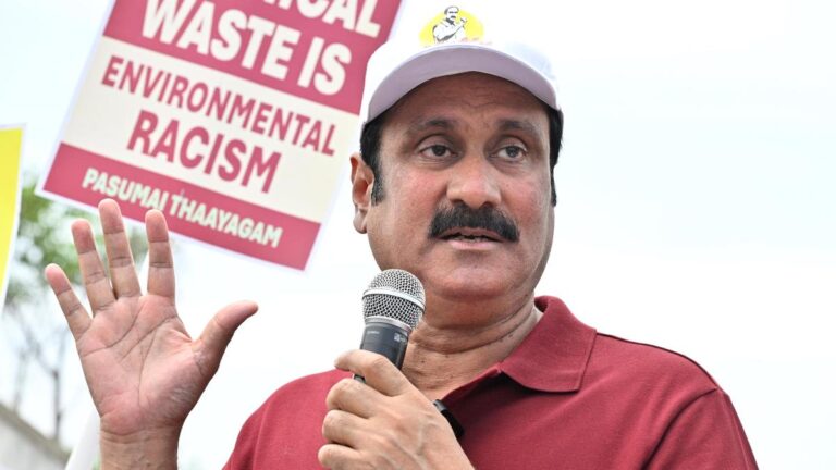 पट्टाली मक्कल काची के अध्यक्ष अंबुमणि रामदास। | फोटो साभार: सी. वेंकटचलपति पीएमके नेता अंबुमणि रामदास ने शनिवार को तमिलनाडु...