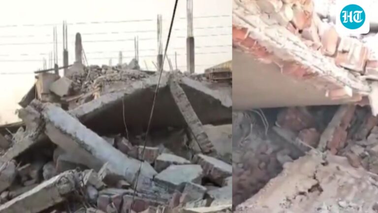 फरीदाबाद: हरफला इलाके में 3 मंजिला निर्माणाधीन इमारत ढह गई. वीडियो