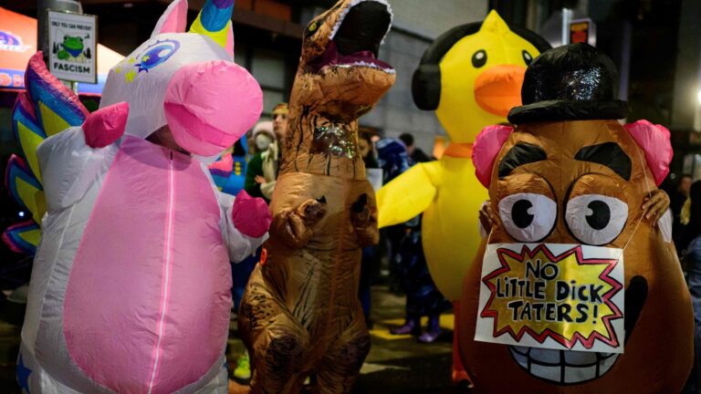 ‘नो किंग्स’ प्रदर्शनकारी मेंढक, चिकन, मुर्गा, टी. रेक्स वेशभूषा में क्यों आ रहे हैं? प्रवृत्ति की व्याख्या